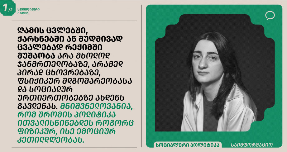 სპეციფიკური ტიპის შრომითი შეთანხმებები საქართველოში: ღამის ცვლა, ცვლები ქარხნებში და სხვა შემთხვევები