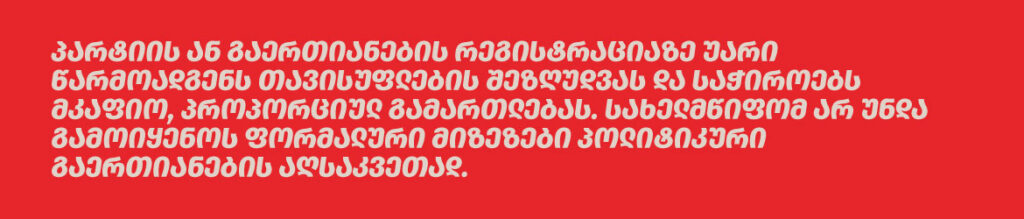 რეგისტრაციის მექანიზმი კი არ შეიძლება გამოყენებული იყოს განსხვავებული პოლიტიკური მოსაზრებების ჩასახშობად.